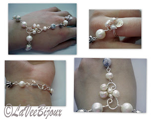 - Bratara cu inel, cu perle de cultura, sarma argintata, argint tibetan, merge minunat si pt mireasa- 38 lei, DISPONIBILA